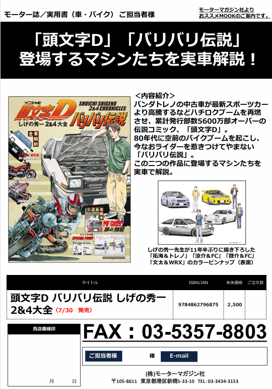 頭文字D バリバリ伝説 しげの秀一 2&4大全(モーターマガジン社)