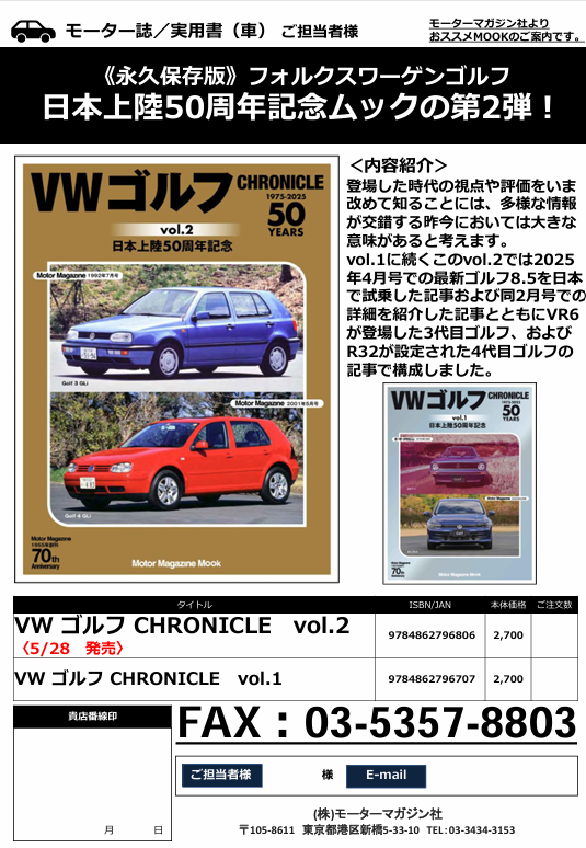 《永久保存版》フォルクスワーゲンゴルフ 日本上陸50周年記念ムックの第2弾!