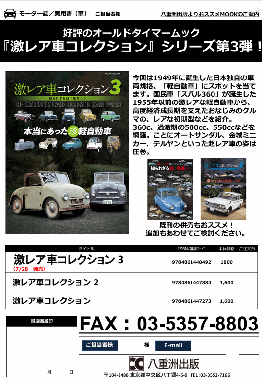好評のオールドタイマームック 『激レア車コレクション』シリーズ第3弾!