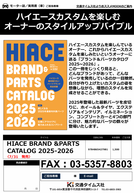 HIACE BRAND &PARTS CATALOG 2025-2026(交通タイムス社)