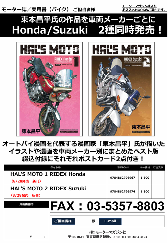 東本昌平氏の作品を車両メーカーごとに Honda/Suzuki 2種同時発売!
