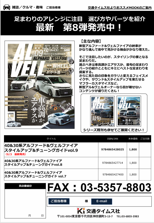 40&30系アルファード&ヴェルファイア スタイルアップ&チューングガイドvol.9 (交通タイムス社)