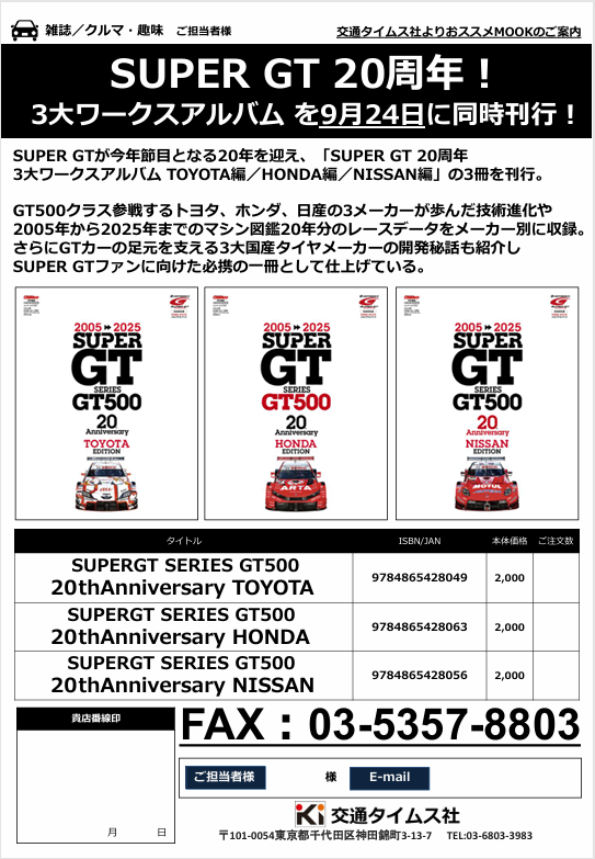 SUPER GT 20周年!3大ワークスアルバム を9月24日に同時刊行!