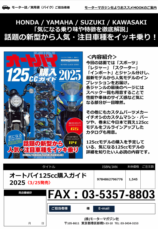 オートバイ125cc購入ガイド 2025(モーターマガジン社)
