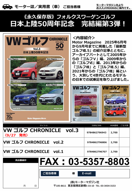《永久保存版》フォルクスワーゲンゴルフ 日本上陸50周年記念ムックの第3弾!